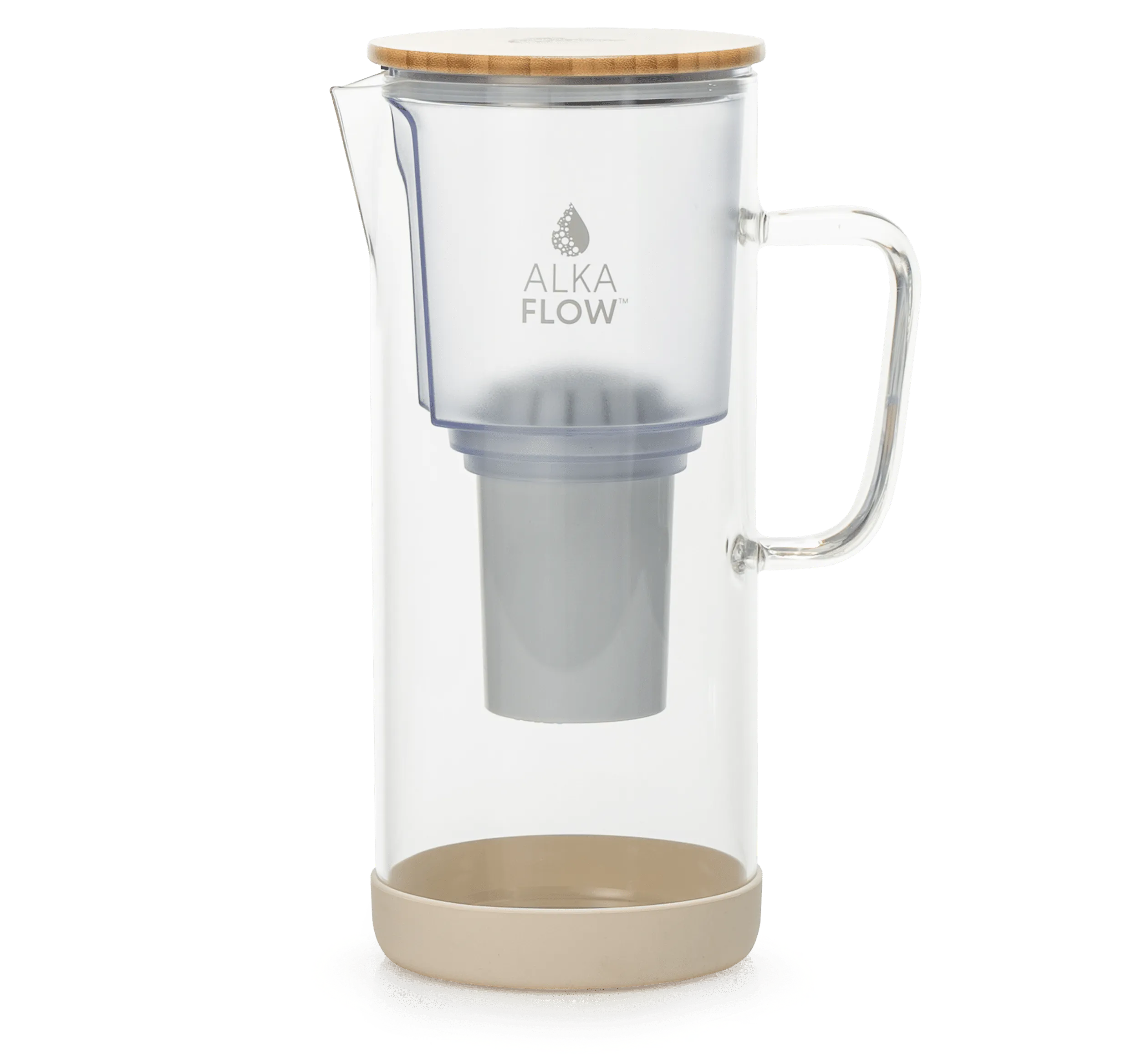 Made from borosilicate glass, the AlkaFlowTM pitcher produces mineral-rich filtered water, free of toxins and plastic nanoparticles commonly found in bottled water and conventional plastic filter pitchers.